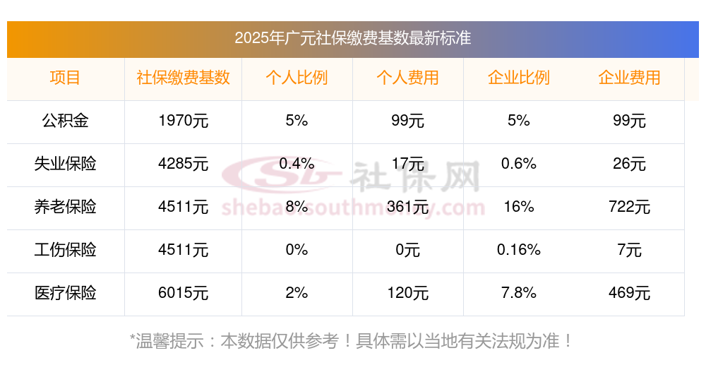 2025年广元社保缴费多少钱?下表是2023-2024年广元社保费用明细参考,如下: