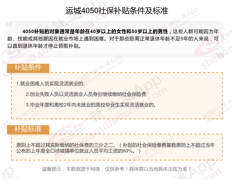 以上就是运城4050灵活就业社保补贴的相关内容,欢迎关注新社通/下载新社通APP了解更多五险一金专业资讯。
