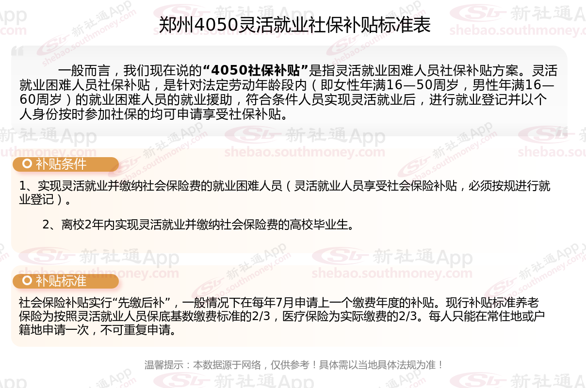 以上就是郑州4050灵活就业困难人员社保补贴的相关内容,欢迎关注新社通/下载新社通APP了解更多五险一金专业资讯。