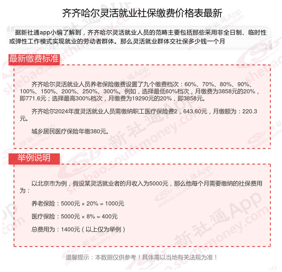 2025齐齐哈尔灵活就业社保缴费价格是多少钱一个月?根据新社通app-社保缴费查询工具提供的最新数据如下: