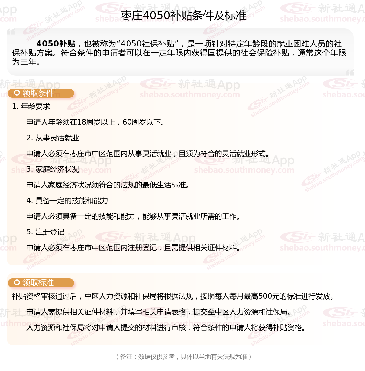2025枣庄灵活就业4050社保补贴是一项面向特定年龄段的就业困难人群的社会保险补贴。