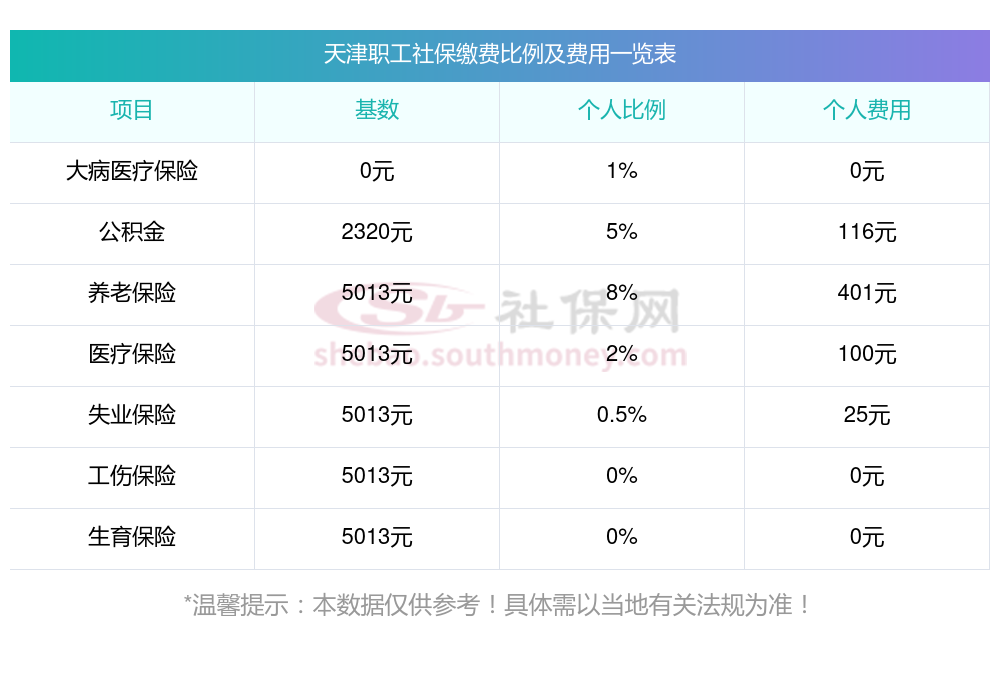 2025年天津社保缴费价格,2025年天津社保缴费多少钱?下表是2025年天津社保费用明细参考,新社通app-社保缴费查询工具提供的最新数据如下: