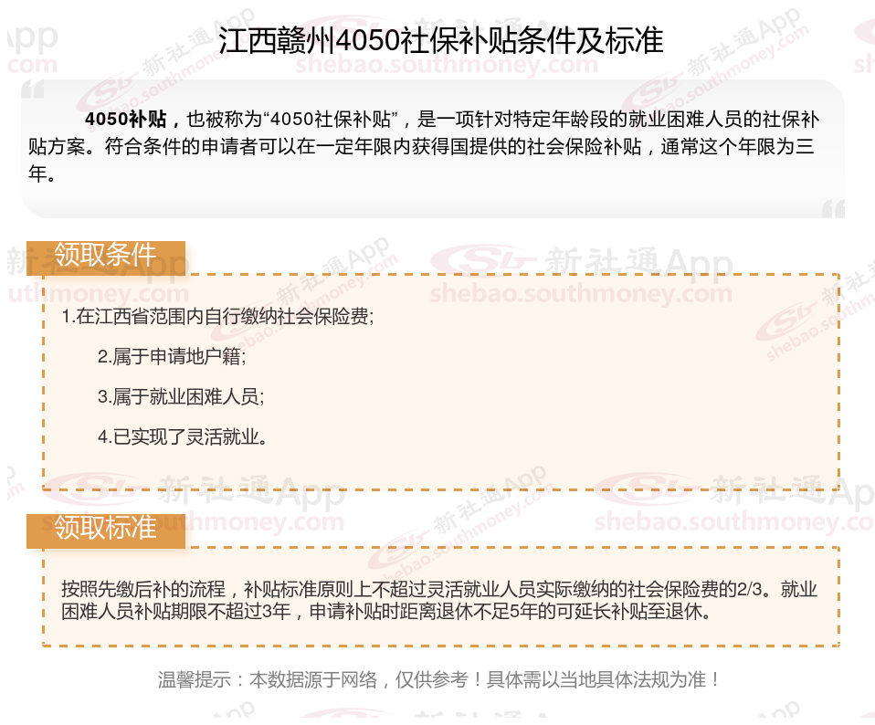 一、2023-2024年江西赣州4050社保补贴标准及条件,最新如下
