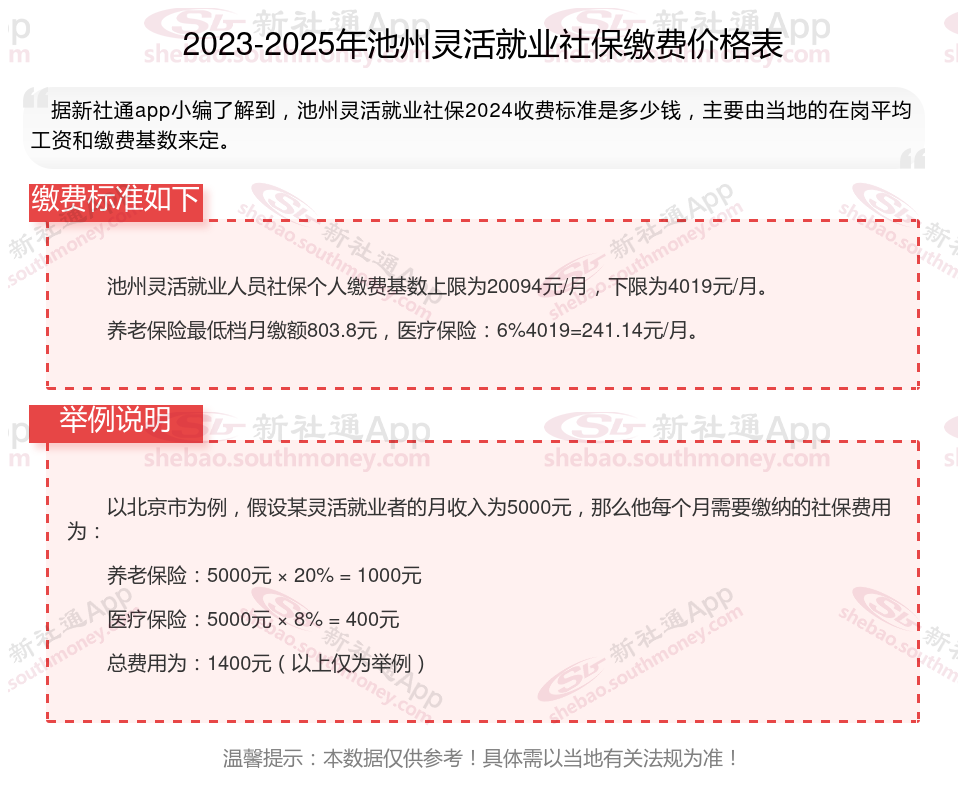 据新社通app数据显示,池州灵活就业养老保险的缴费基数为:4227元。灵活就业人员参保缴费的比例为个人20%。