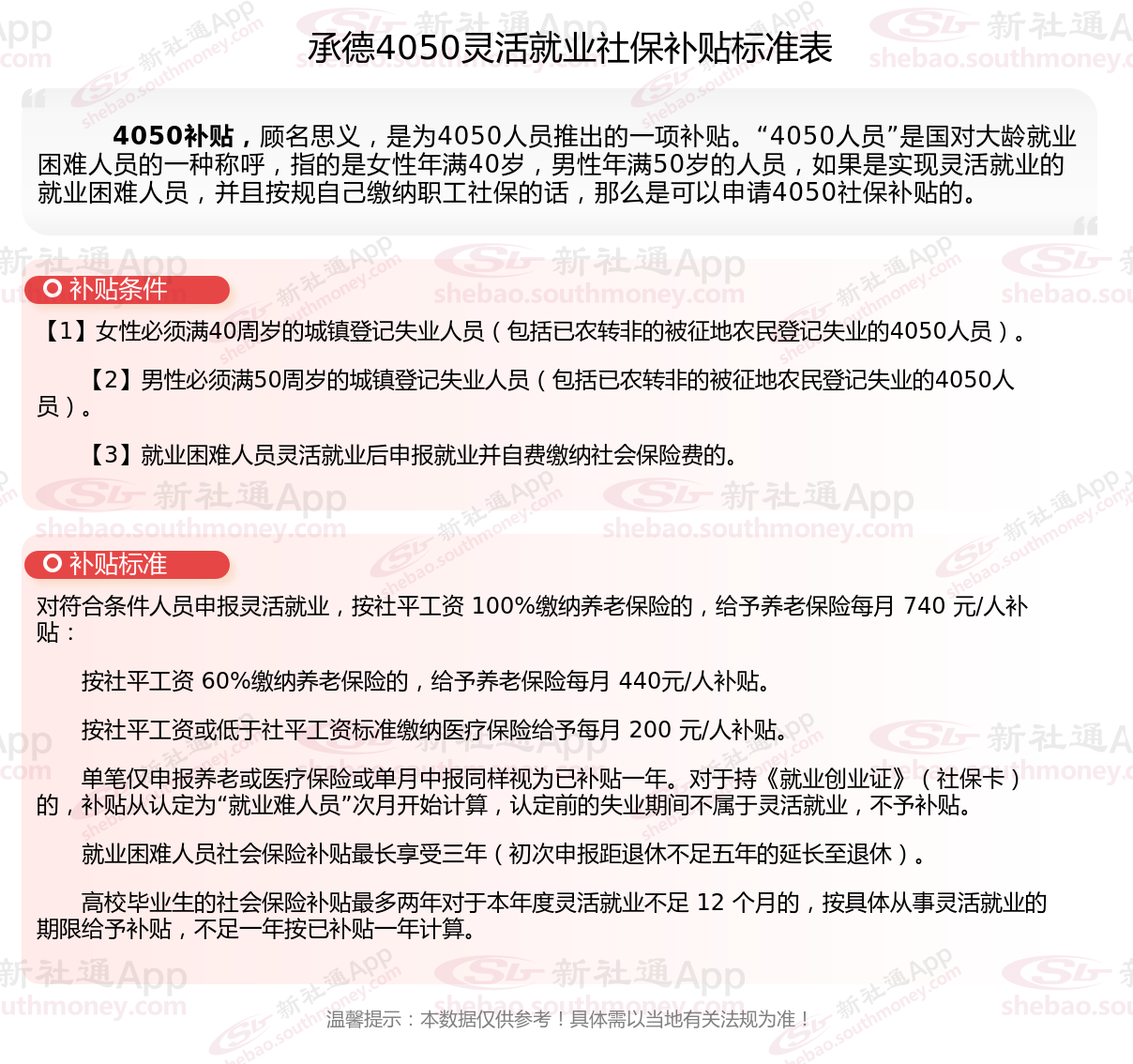 一、2025年承德灵活就业4050社保补贴标准是多少?申请条件是什么?