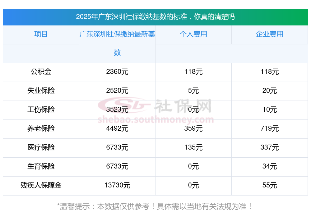2025年广东深圳社保缴费多少钱?下表是2023-2024年广东深圳社保费用明细参考,新社通app-社保缴费查询工具提供的最新数据如下:
