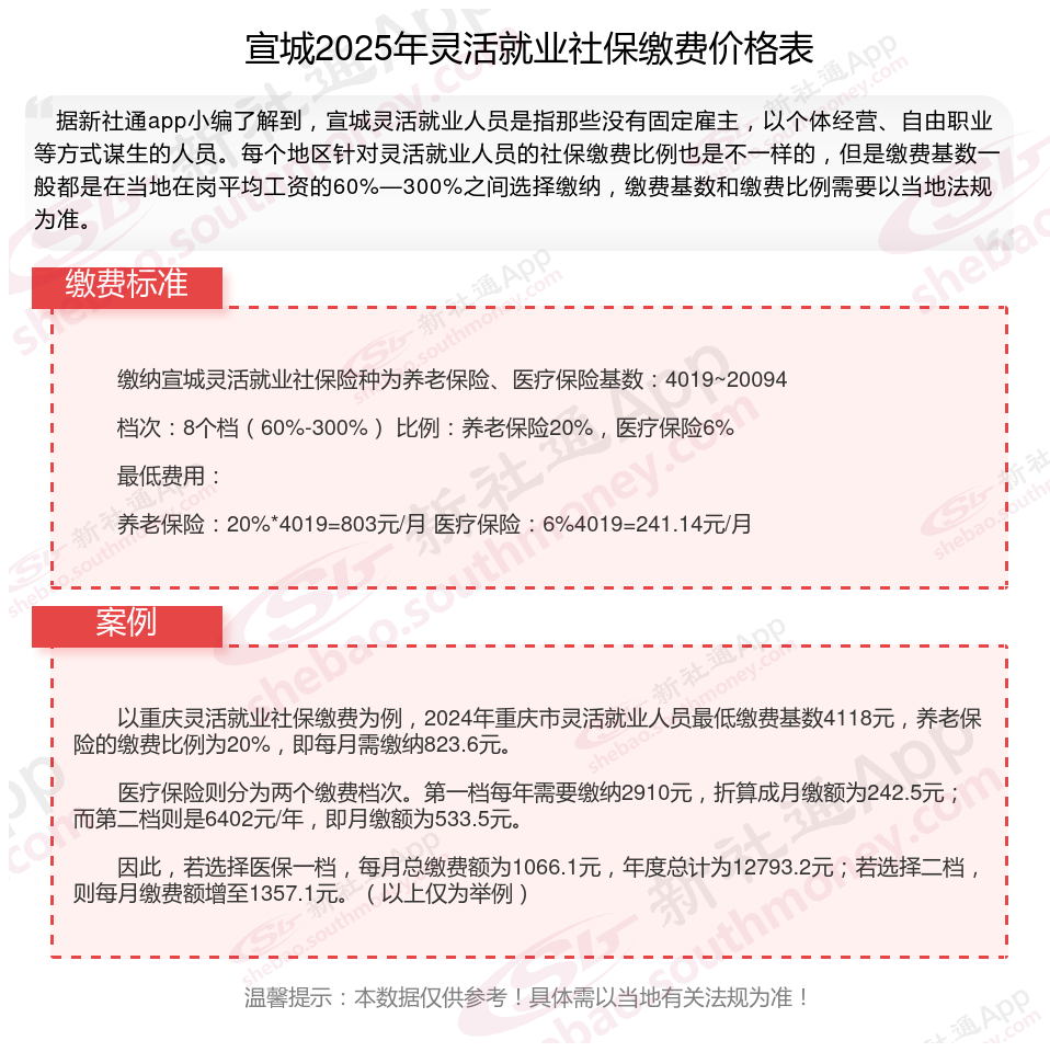 据新社通app数据显示,2024-2025年宣城灵活就业人员养老保险的缴费标准: