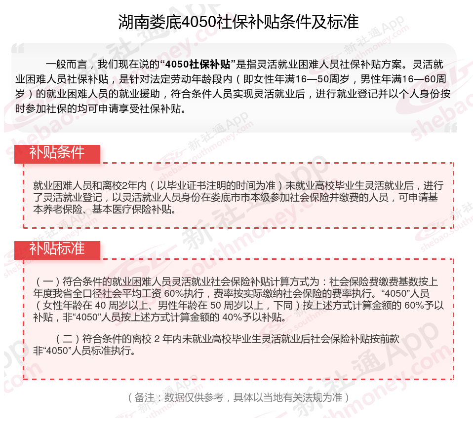 二、湖南娄底4050社保补贴标准及条件2025年最新消息