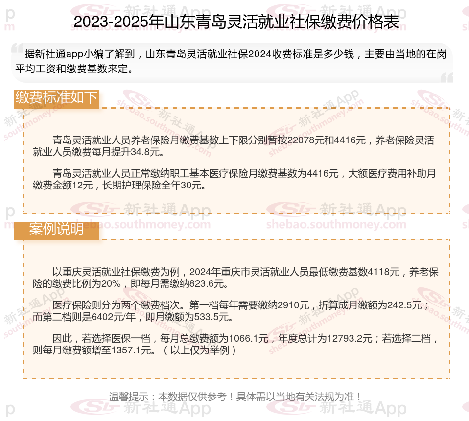山东青岛灵活就业人员的社保缴费标准是多少?根据新社通app-社保缴费查询工具提供的最新数据如下: