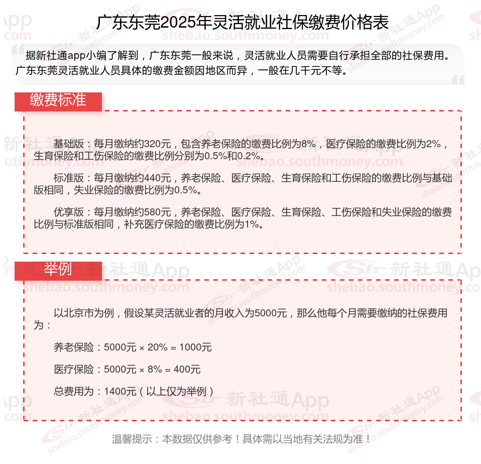据新社通app数据显示,2024-2025年广东东莞灵活就业人员养老保险的缴费标准: