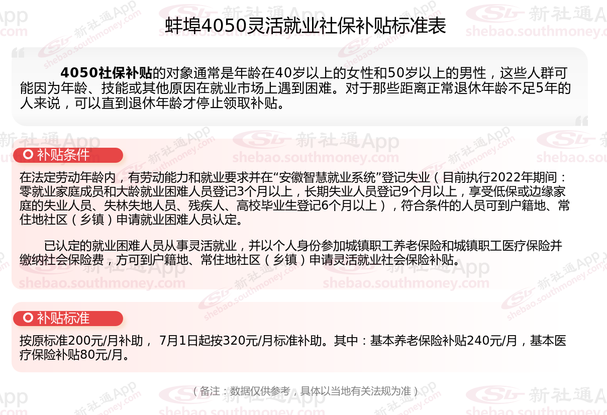 二、2025年蚌埠4050社保补贴标准(蚌埠4050灵活就业人员补贴标准是多少钱?蚌埠2025年4050补贴新规能领多少钱?)