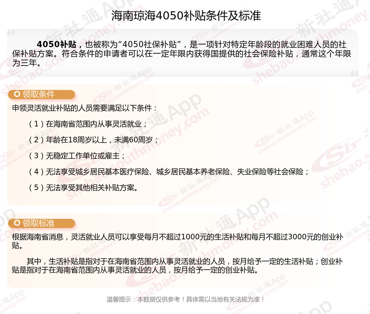 二、海南琼海4050社保补贴标准及条件(2025年最新)