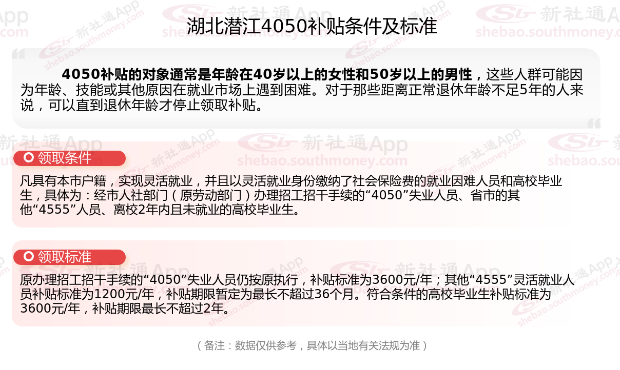 二、湖北潜江4050社保补贴标准及条件2025年,最新如下