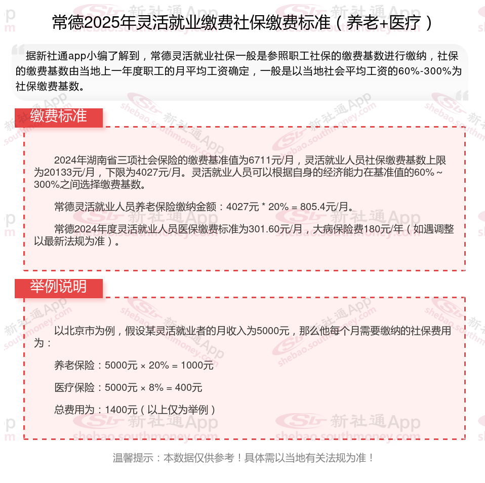 常德2024年度灵活就业人员医保缴费标准为301.60元/月,大病保险费180元/年(如遇调整以最新法规为准)。