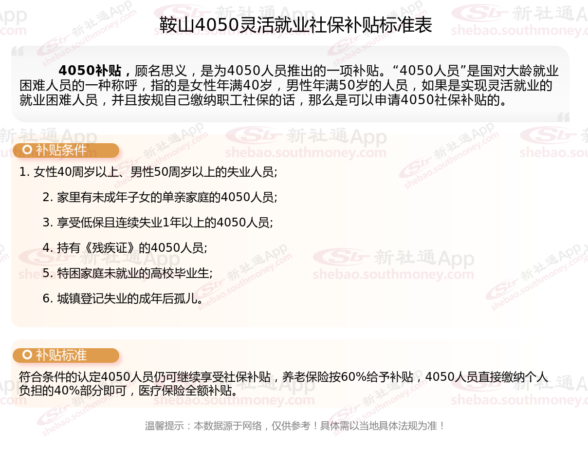 以上就是鞍山4050灵活就业社保补贴的相关内容,欢迎关注新社通/下载新社通APP了解更多五险一金专业资讯。