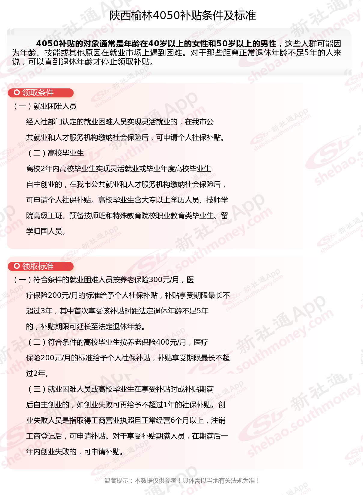 二、2025年陕西榆林4050社保补贴标准及条件,最新如下: