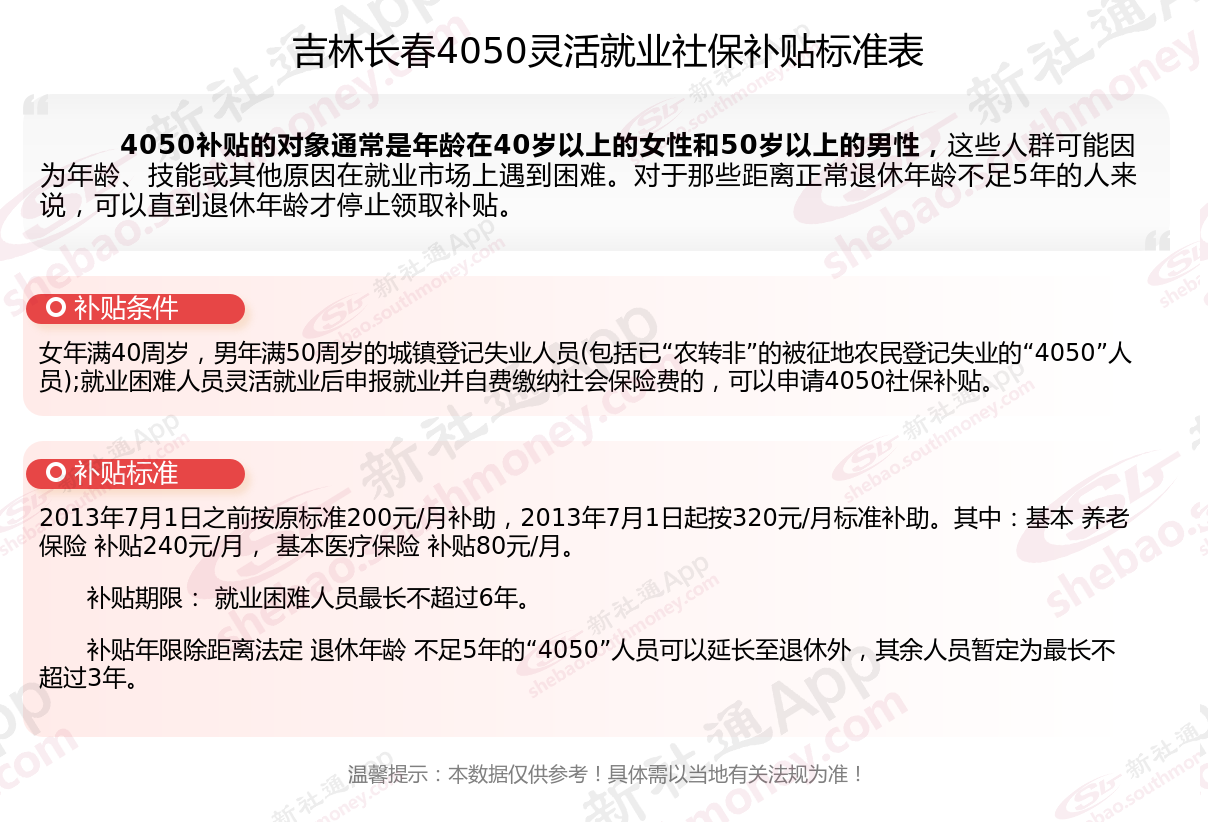 2025吉林长春4050补贴主要针对的是年龄在40岁以上的女性和50岁以上的男性,这些人群通常因为年龄较大而面临就业困难。