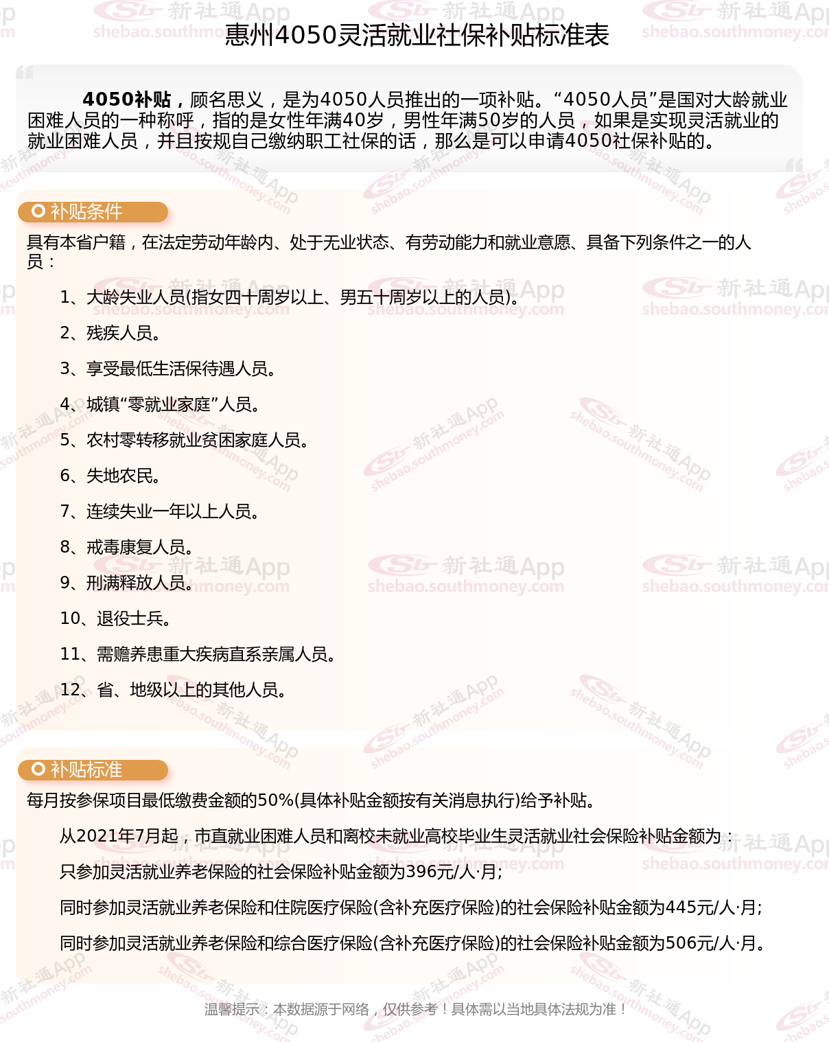 以上就是惠州4050灵活就业困难人员社保补贴的相关内容,欢迎关注新社通/下载新社通APP了解更多五险一金专业资讯。