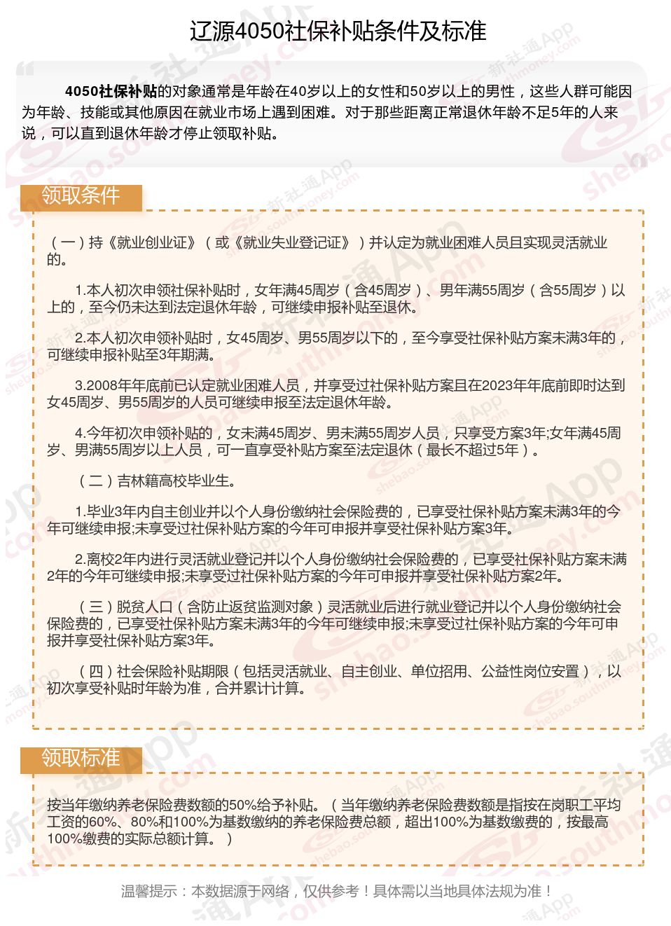 一、辽源4050社保补贴标准及条件2025年最新消息