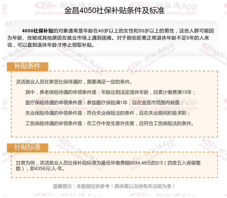 一、金昌灵活就业人员4050补贴最新标准2025年,金昌4050灵活就业人员养老补贴一年可以有多少钱?