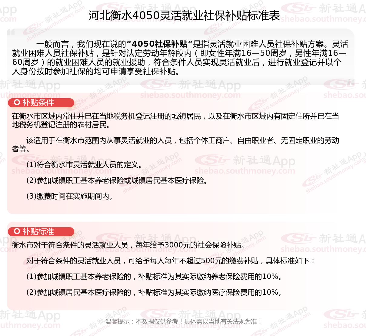 以上就是河北衡水4050灵活就业困难人员社保补贴的相关内容,欢迎关注新社通/下载新社通APP了解更多五险一金专业资讯。