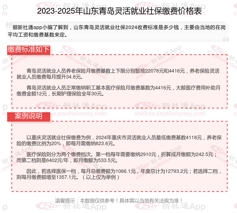 一、2025年山东青岛灵活就业社保缴费标准公布啦 山东青岛灵活就业社保多少钱一个月?