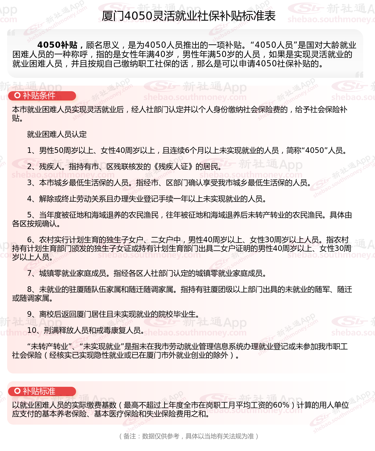 二、厦门4050社保补贴标准及条件2025年最新消息