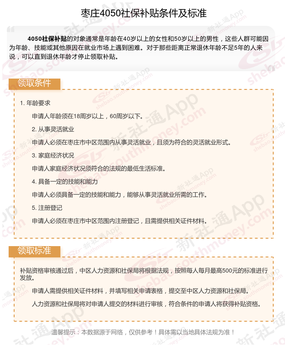 二、2025年枣庄4050社保补贴标准(枣庄4050灵活就业人员补贴标准是多少钱?枣庄2025年4050补贴新规能领多少钱?)