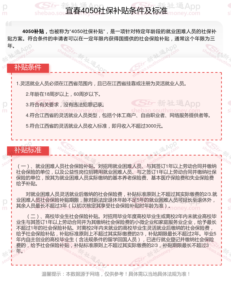 2025宜春灵活就业4050社保补贴是一项面向特定年龄段的就业困难人群的社会保险补贴。