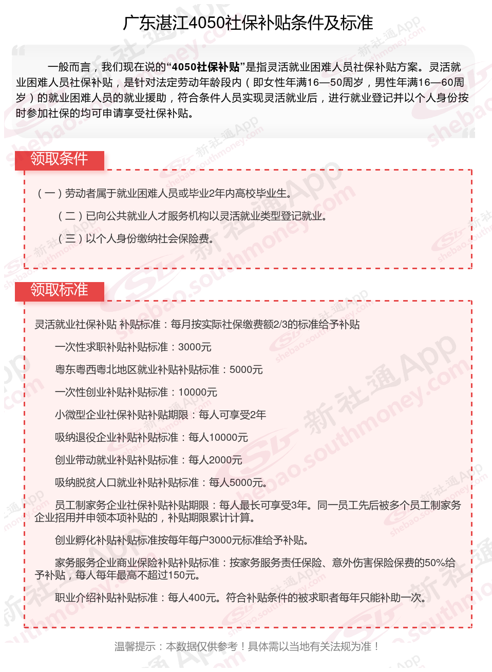 以上就是广东湛江4050灵活就业困难人员社保补贴的相关内容,欢迎关注新社通/下载新社通APP了解更多五险一金专业资讯。