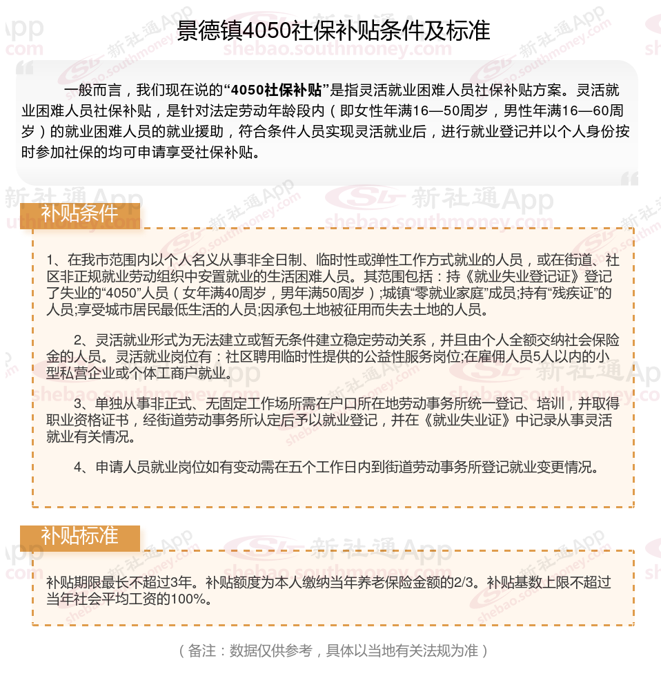 以上就是景德镇4050灵活就业社保补贴的相关内容,欢迎关注新社通/下载新社通APP了解更多五险一金专业资讯。