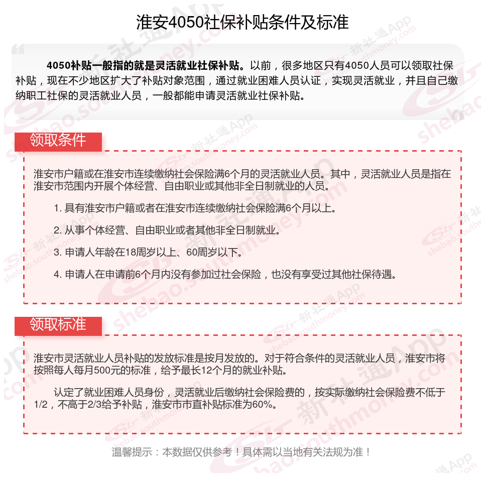 二、淮安4050社保补贴标准及条件2025年,最新如下