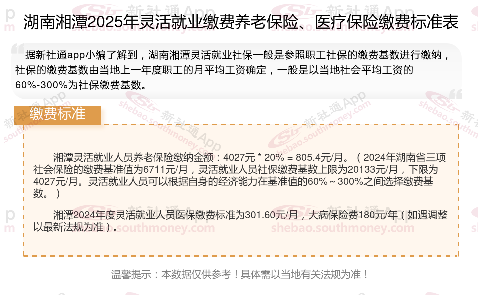 以上就是新社通小编带来湖南湘潭灵活就业社保缴费知识,内容供参考,希望对你有帮助,欢迎关注/下载新社通APP解锁更多社保专业资讯。