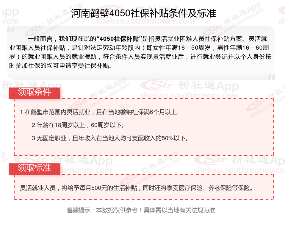 二、河南鹤壁4050社保补贴标准及条件(2025年最新)