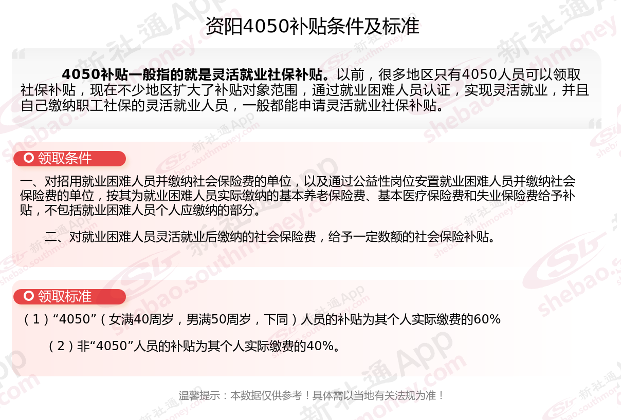 以上就是资阳4050灵活就业社保补贴的相关内容,欢迎关注新社通/下载新社通APP了解更多五险一金专业资讯。