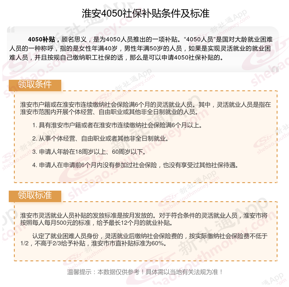 二、淮安4050社保补贴标准及条件2025年,最新如下