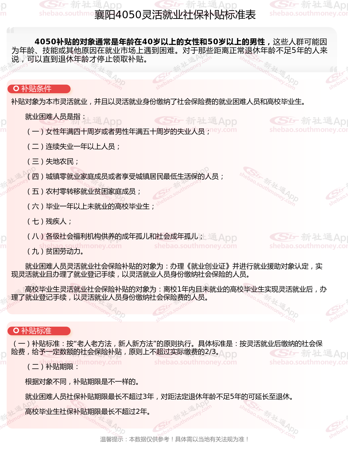 一、2025年襄阳4050社保补贴标准是怎么样的?襄阳4050一年可拿多少钱?