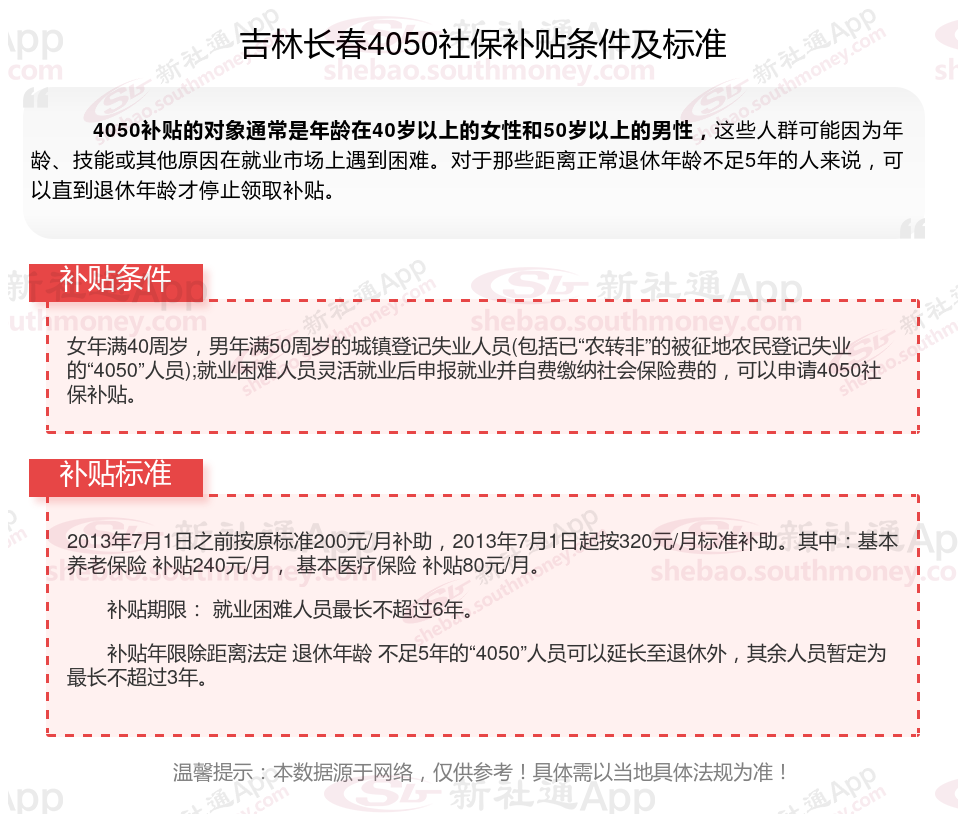 2025吉林长春4050补贴主要针对的是年龄在40岁以上的女性和50岁以上的男性,这些人群通常因为年龄较大而面临就业困难。