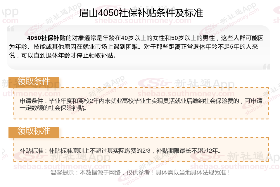 二、眉山4050社保补贴标准及条件2025年最新消息