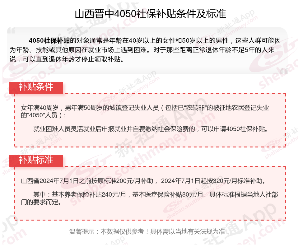 2025山西晋中4050补贴主要针对的是年龄在40岁以上的女性和50岁以上的男性,这些人群通常因为年龄较大而面临就业困难。