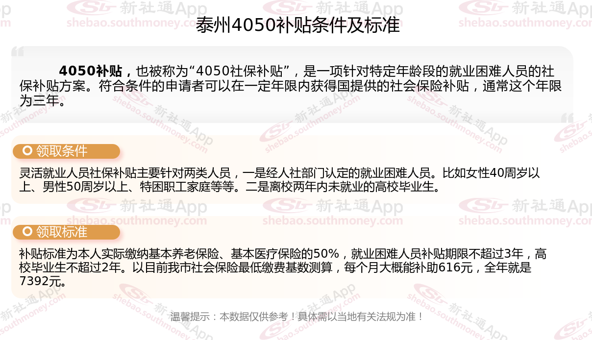 二、2025年泰州4050社保补贴标准(泰州4050灵活就业人员补贴标准是多少钱?泰州2025年4050补贴新规能领多少钱?)