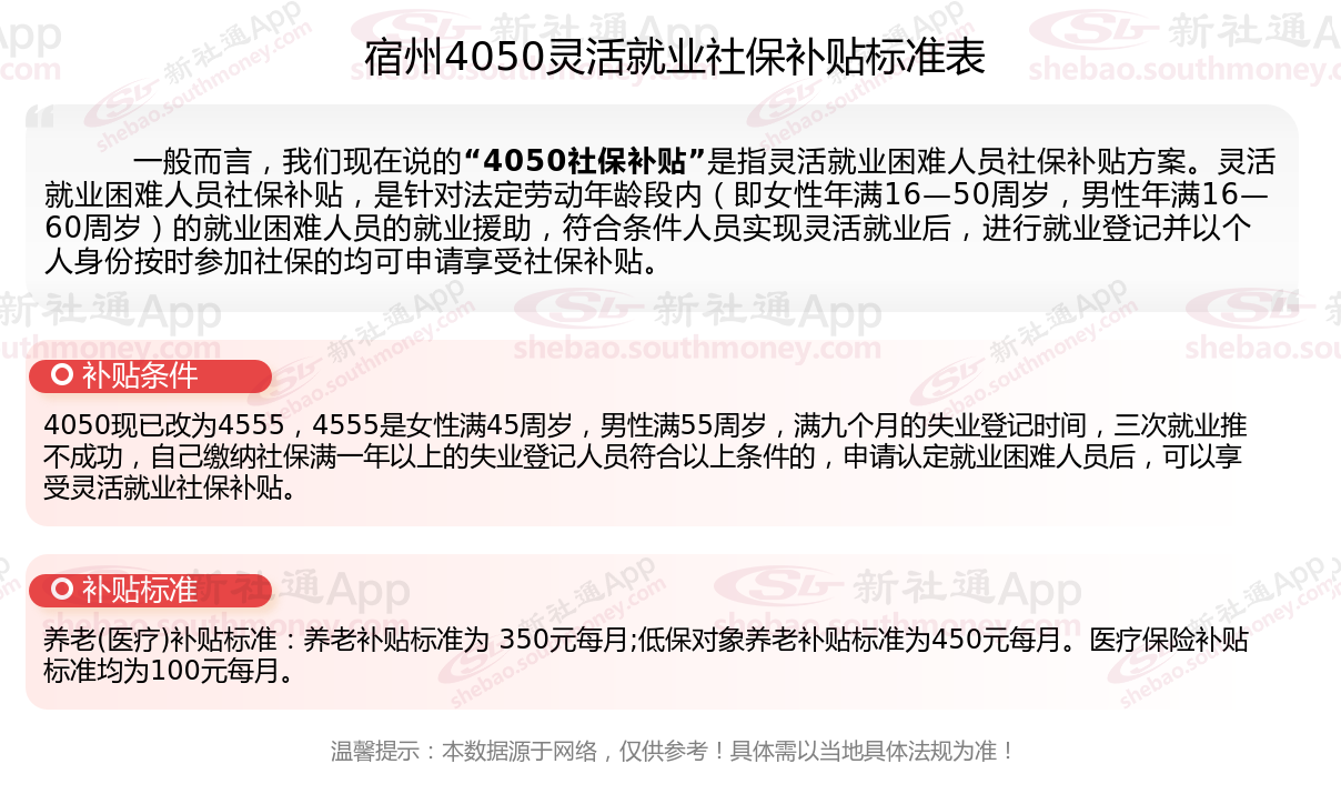 以上就是宿州4050灵活就业社保补贴的相关内容,欢迎关注新社通/下载新社通APP了解更多五险一金专业资讯。