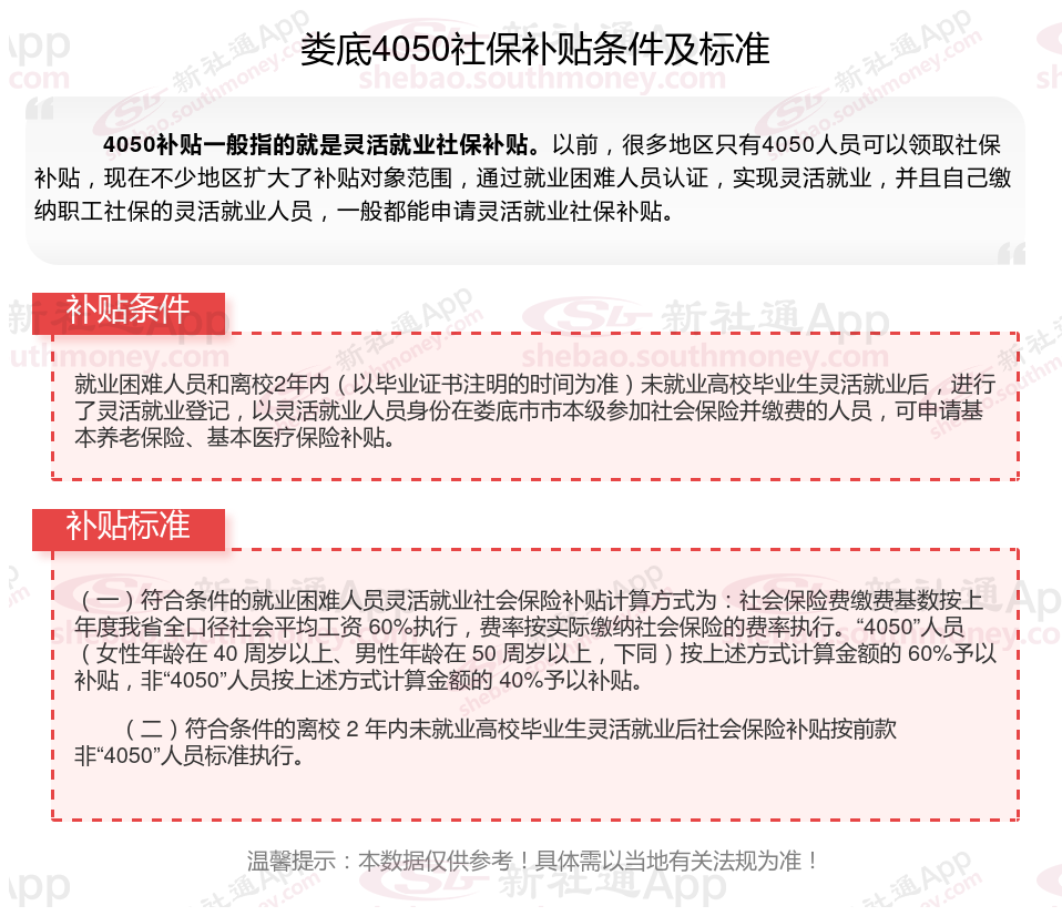二、娄底4050社保补贴标准及条件(2025年最新)