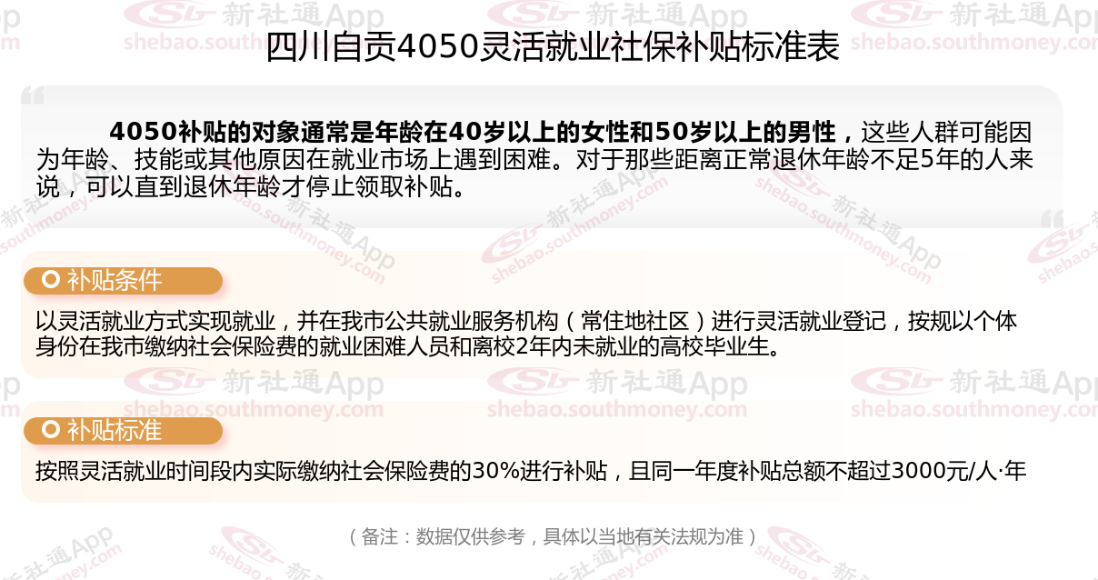 以上就是四川自贡4050灵活就业社保补贴的相关内容,欢迎关注新社通/下载新社通APP了解更多五险一金专业资讯。