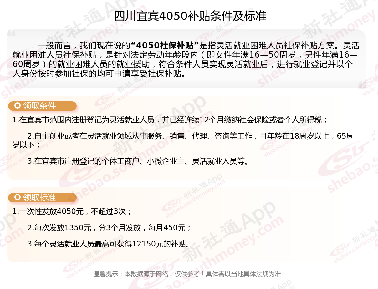一、2025年四川宜宾4050社保补贴标准是怎么样的,附领取条件