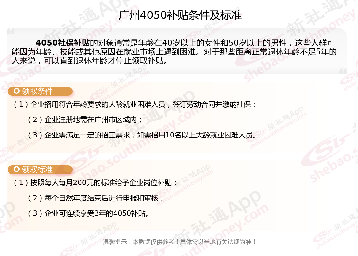 2025广州4050补贴主要针对的是年龄在40岁以上的女性和50岁以上的男性,这些人群通常因为年龄较大而面临就业困难。