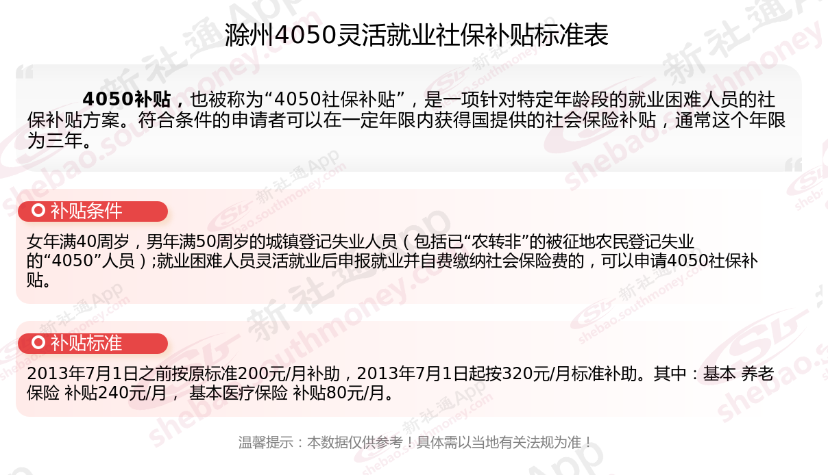 二、2025年滁州4050社保补贴标准及条件,最新如下:
