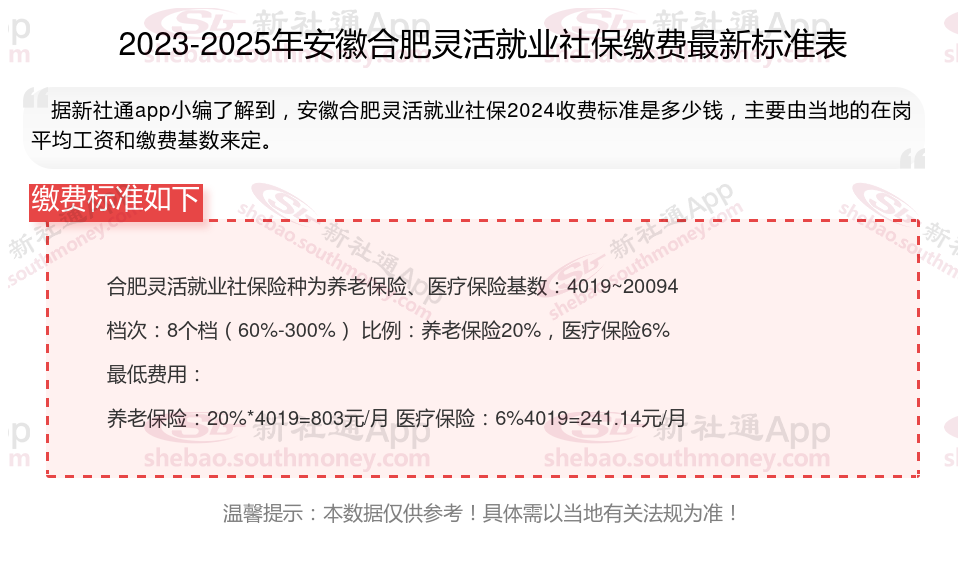 据新社通app数据显示,安徽合肥养老保险缴费基数2024-2025年最新标准如下:
