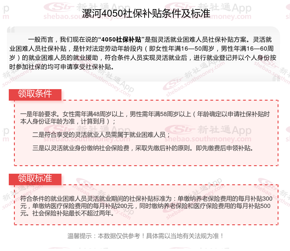 以上就是漯河4050灵活就业困难人员社保补贴的相关内容,欢迎关注新社通/下载新社通APP了解更多五险一金专业资讯。