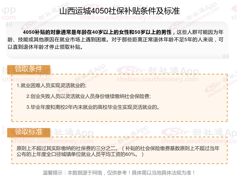 2025山西运城灵活就业4050社保补贴是一项面向特定年龄段的就业困难人群的社会保险补贴。